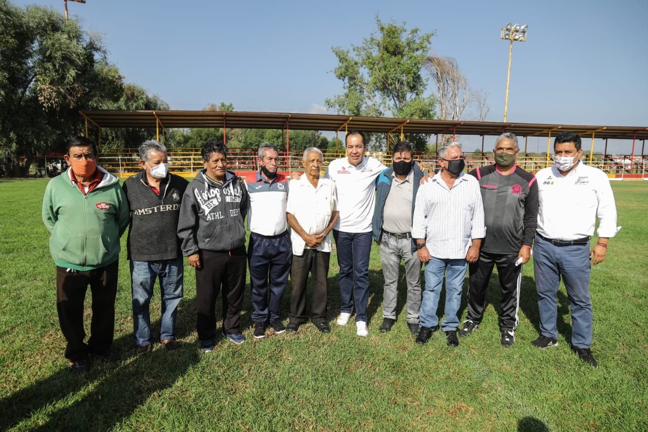 El candidato común del PRI, el PAN y el PRD asumió el compromiso de apoyar a la Liga Municipal de Fútbol para que tenga instalaciones de primer nivel, entre las mejores de América Latina en oportunidades de desarrollo deportivo.