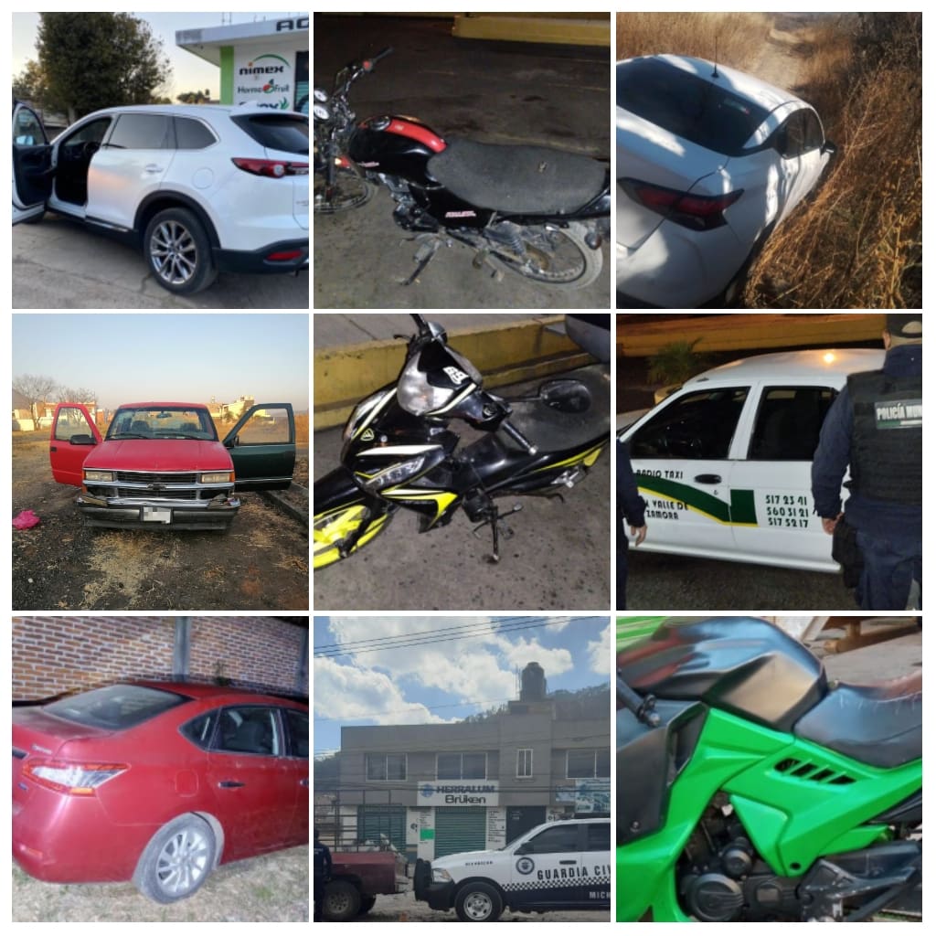 En los municipios de Morelia, Zamora, Jacona, Tingambato y Ecuandureo; los elementos de la Guardia Civil realizaban patrullajes de vigilancia en calles y caminos carreteros, donde pudieron asegurar tres vehículos de la marca Nissan, dos de la marca Italika y uno de la marca Mazda, todos ellos con reporte de robo.