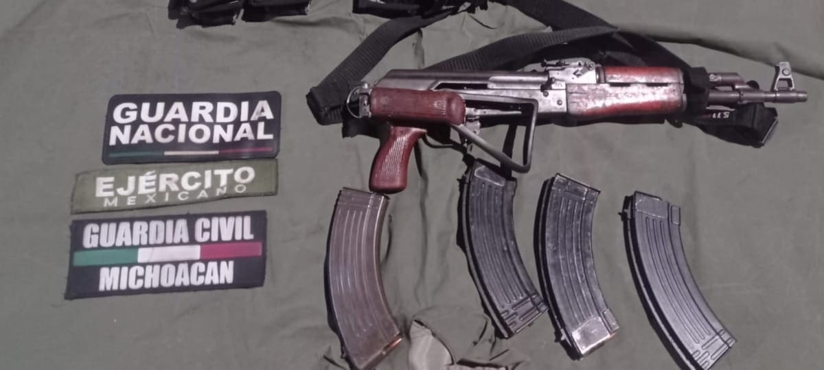 Uruapan, Michoacán.- 25 de noviembre del 2023.- En una reciente movilización de los guardias civiles de la Secretaría de Seguridad Pública (SSP) fueron detenidos dos presuntos integrantes de una célula delincuencial, a los cuales les aseguraron armamento y una camioneta.