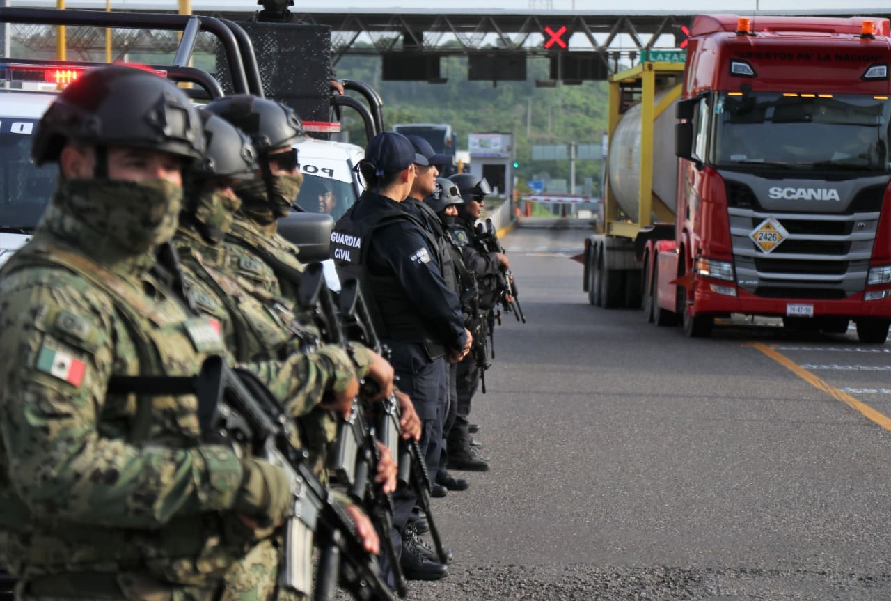 La Guardia Civil de la SSP Michoacán en coordinación con la Secretaría de Marina (Semar) y la SSP del estado de Guerrero establecen labores permanentes para garantizar un libre y seguro tránsito carretero en los límites de las entidades, en beneficio del turismo, pero también del transporte de carga de diversas mercancías.