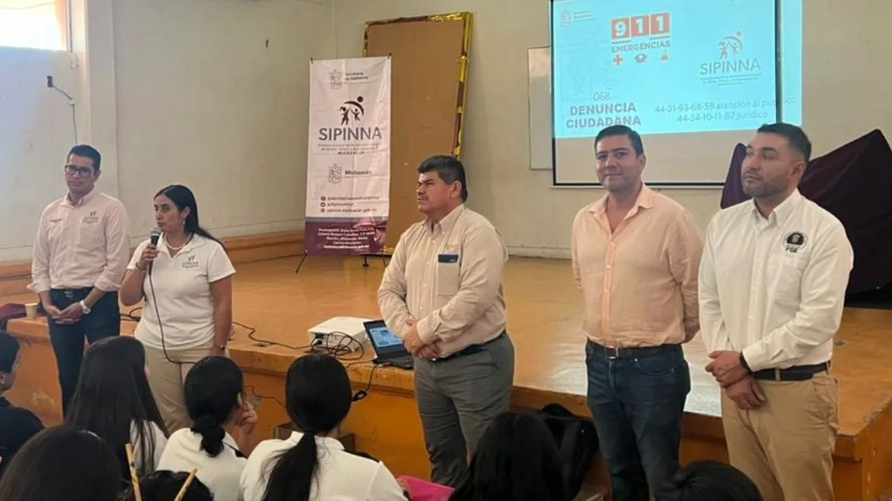 Morelia, Michoacán, a 4 de marzo de 2024.- Como parte de las acciones interinstitucionales para promover información que coadyuve a prevenir y detectar víctimas de los delitos de trata de personas en sus diversas modalidades, la Fiscalía General del Estado de Michoacán (FGE), en coordinación con el Sistema de Protección Integral de Niñas, Niños y Adolescentes del Gobierno del Estado (SIPINNA), impartieron una conferencia en materia de Trata de Personas a estudiantes del CECyTEM, plantel Lázaro Cárdenas.