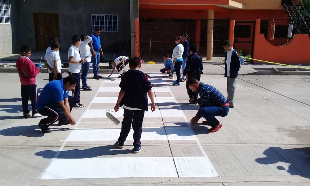 En beneficio de la comunidad estudiantil de la Escuela Primaria “Emiliano Zapata”, así como de los pobladores, elementos de la mencionada dirección balizaron las cebras peatonales, que se ubican en las inmediaciones de la institución académica.