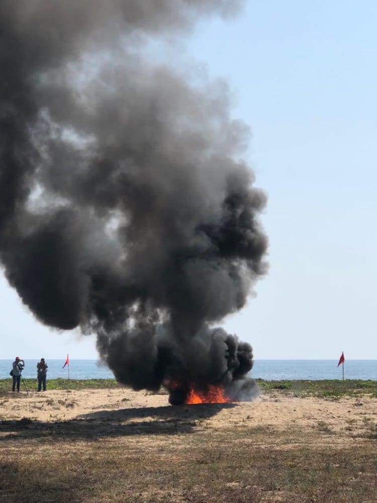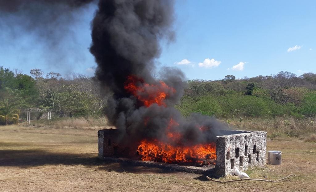 En Tapachula, Chiapas, el acto de incineración de 644 kilos 27 gramos 900 miligramos de cocaína, se llevó a cabo en las instalaciones del 14/a Zona Naval de la Secretaría de Marina Armada de México.