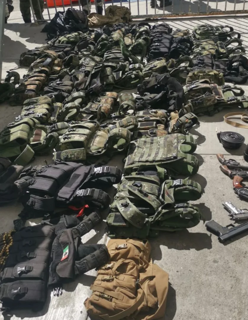 En el lugar fueron detenidas 32 personas y aseguradas 43 armas de fuego, además de artefactos explosivos y equipo táctico