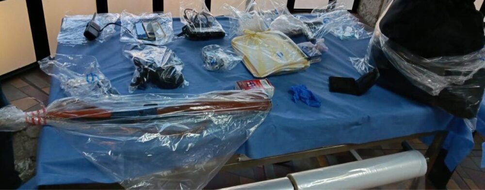 En el sitio, las autoridades reportaron el decomiso de un arma corta, un arma larga, cargadores y cartuchos útiles. Asimismo, se localizaron 16 envoltorios que contenían una sustancia granulosa con las características de la metanfetamina. Además de los objetos bélicos y la droga, se incautaron aditamentos tácticos, dispositivos de comunicación, teléfonos celulares, un escáner automotriz, documentación y un uniforme policial.