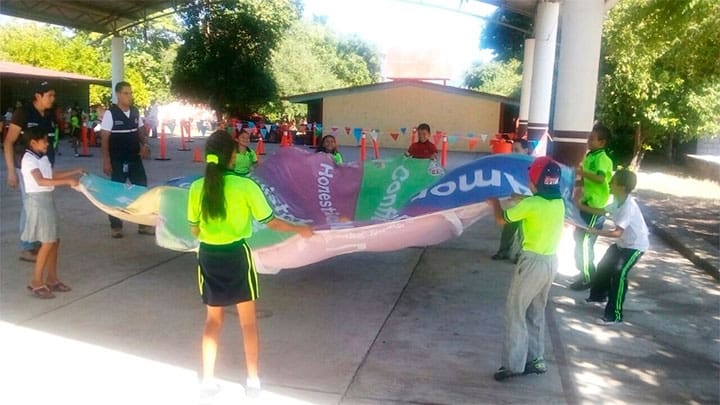 Personal de la institución visitó la Escuela Primaria “Ignacio López Rayón”, donde se realizó una jornada infantil que incluyó juegos como la oca y paracaídas de valores, donde los infantes conocen su significado para crear un entorno de paz, amor y respeto en su entorno.