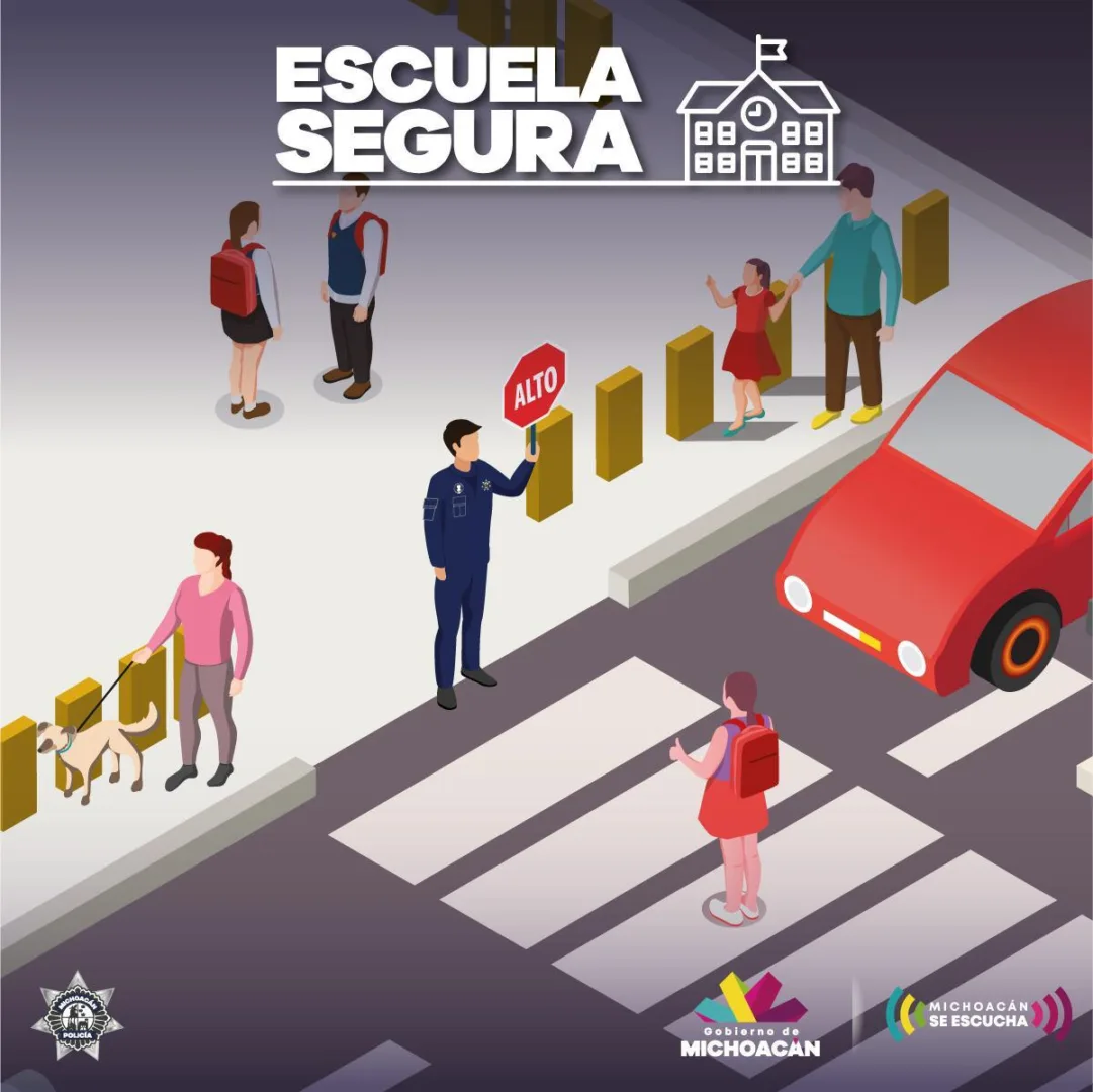Con el propósito de salvaguardar el bienestar de los educandos, elementos de la Policía Michoacán realizan acciones de proximidad en las inmediaciones de las instituciones académicas.