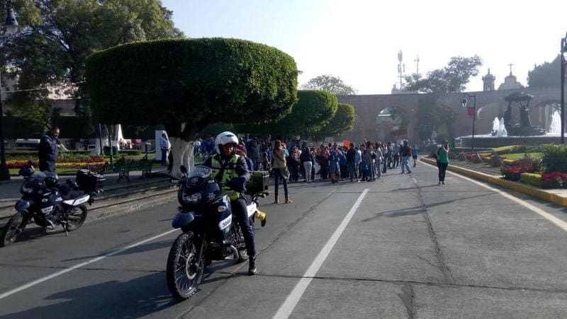 Morelia, Michoacán- Con la finalidad de preservar el orden, la Secretaría de Seguridad Pública (SSP), mantiene un dispositivo de vigilancia en el Centro de la ciudad, ante una movilización que realiza un grupo de personas.