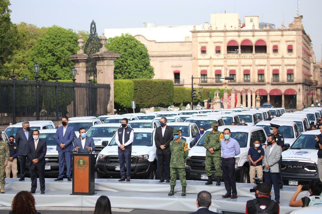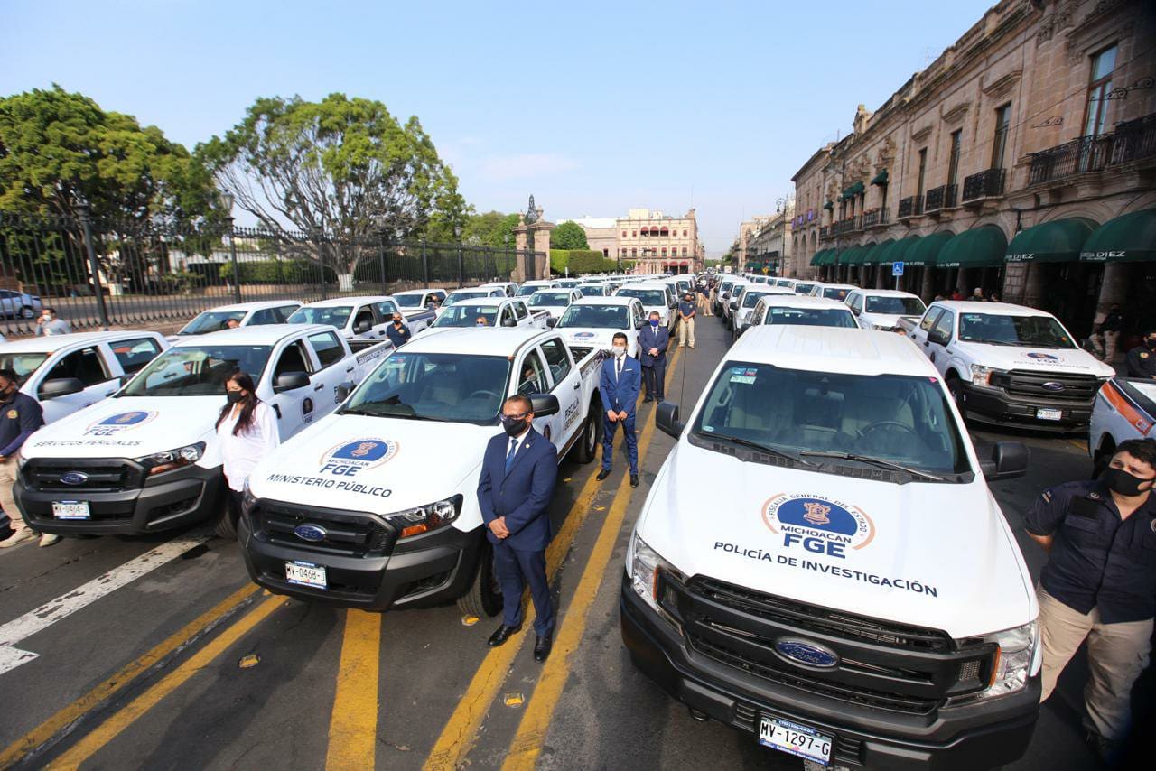 “Hoy, con la entrega de 150 vehículos a la Fiscalía General del Estado refrendamos nuestro compromiso para seguir luchando en contra de la inseguridad que aqueja a nuestro estado y lograr que las y los michoacanos se sientan seguros en el lugar donde viven; y que cada delito, especialmente los más graves, no queden impunes”, enfatizó.