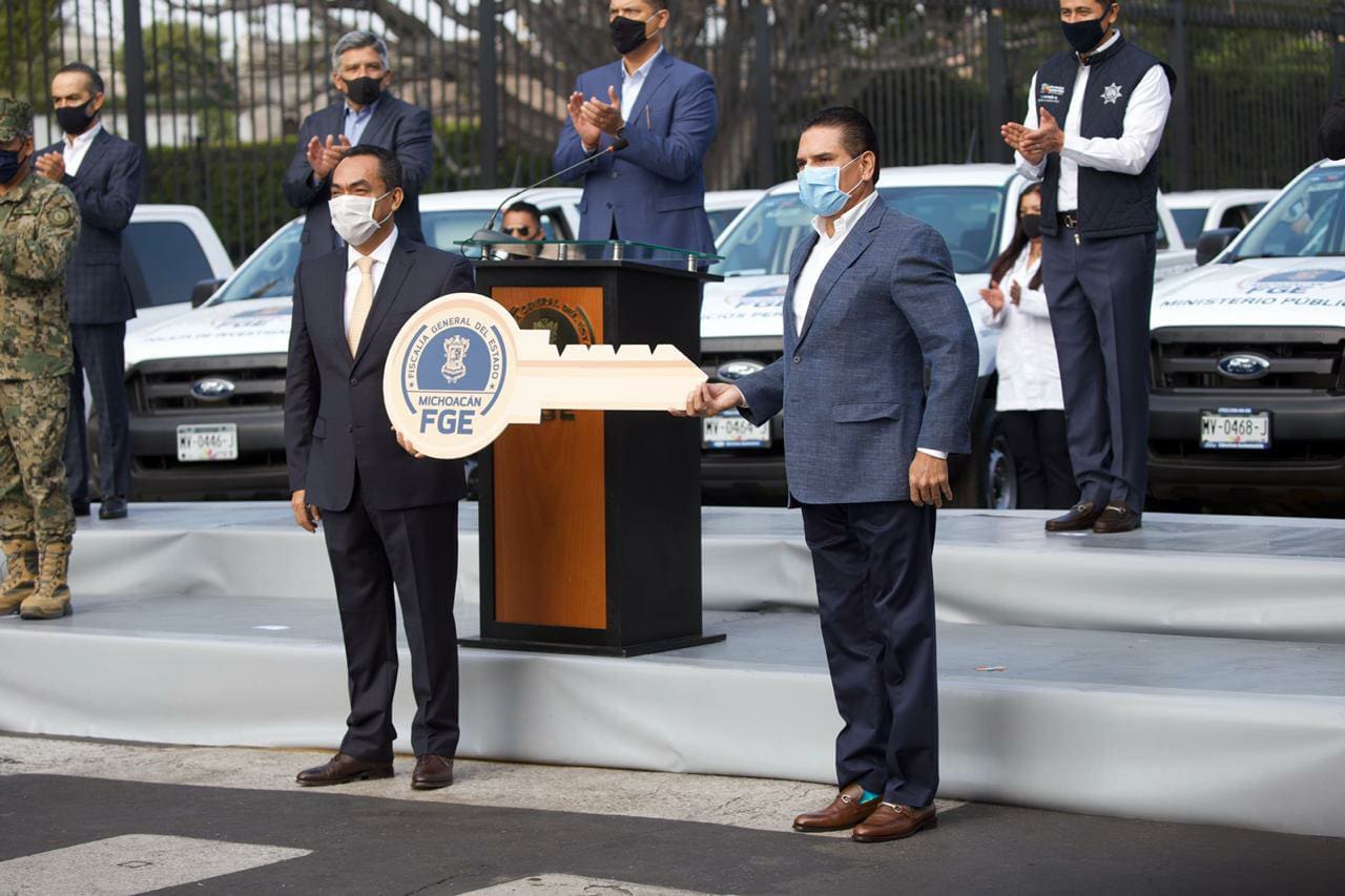 con la finalidad de reforzar las tareas de investigación y acceso a la justicia para las y los michoacanos, el Gobernador Silvano Aureoles Conejo hizo la entrega de 150 vehículos a la Fiscalía General del Estado.