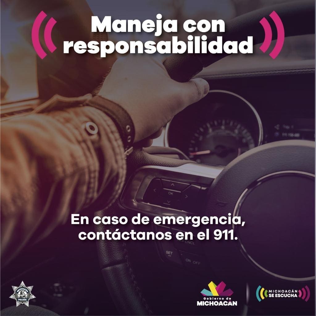 Morelia, Michoacán.- Con la finalidad de disminuir el número de accidentes viales, la Secretaría de Seguridad Pública (SSP), exhorta a la población a evitar hacer uso del celular o cualquier otro dispositivo que imposibilite la conducción adecuada de los vehículos.