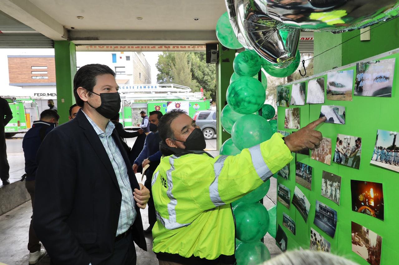 Ante los rescatistas mencionó: “yo soy ex rescatista, fui parte del cuerpo de rescate y protección civil de Morelia a mis 16 años y el día de hoy me traen muchos recuerdos y satisfacción. La adrenalina canalizada al servicio público, es la esencia de esta corporación”.