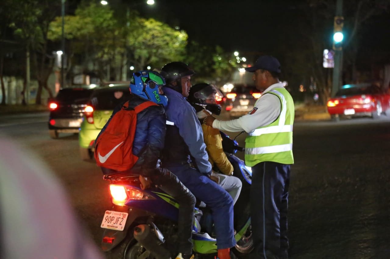 Morelia, Michoacán, 16 de febrero del 2023.- Como un exhorto a que las y los motociclistas transiten de manera segura en la vía pública, con los aditamentos necesarios y la documentación en regla; el personal de la Dirección de Tránsito y Movilidad de la Secretaría de Seguridad Pública (SSP) refuerza el Operativo Relámpago en la ciudad de Morelia.