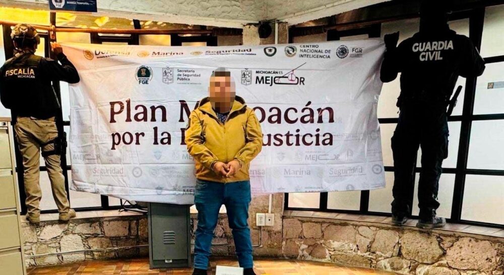 En la colonia Margarita Maza de Juárez, en Morelia, la institución confirmó la detención de Paulo César “N”, de 43 años. En el inmueble se localizaron dos armas largas, cartuchos, sustancias con características de narcótico y equipo táctico con logotipos de la FGE y la FGR. Asimismo, la autoridad señaló el hallazgo de documentación presuntamente vinculada al cobro de cuotas a transportistas de bancos de arena, además del aseguramiento de tres vehículos, una motocicleta y una cuatrimoto.