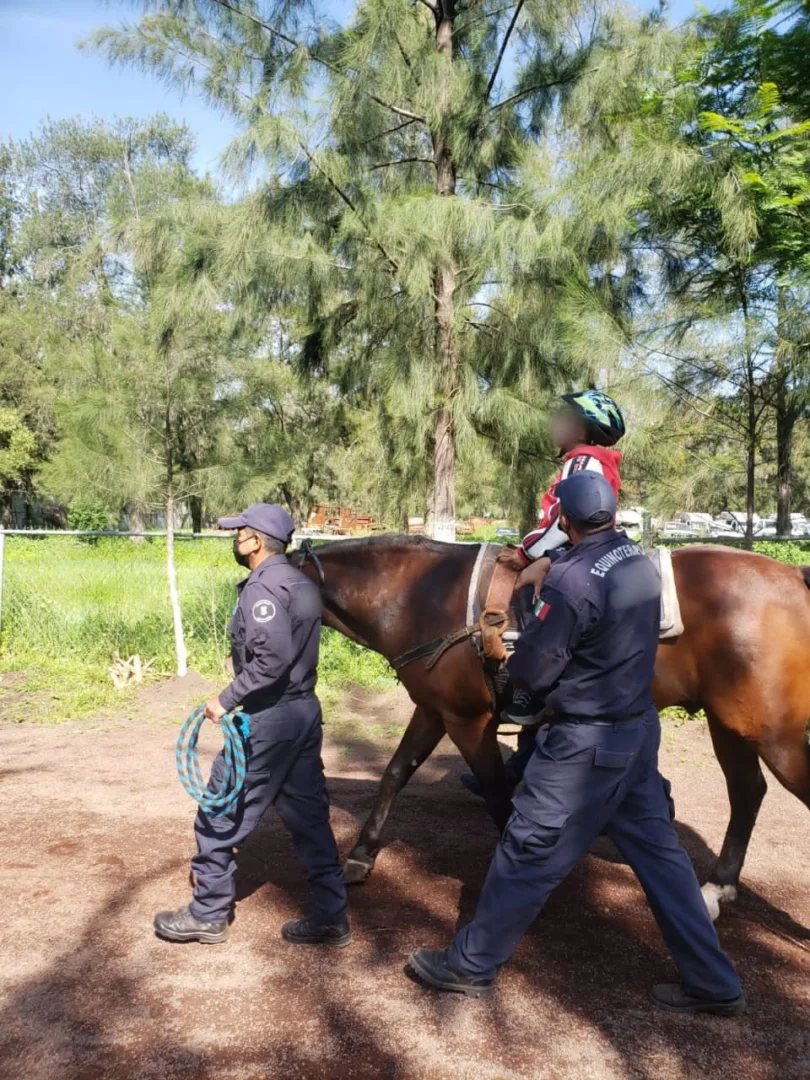 Morelia, Michoacán, 5 de agosto del 2022.- En aras de contribuir con la rehabilitación de los infantes que sufren de alguna discapacidad, este día dentro del Programa de Equinoterapia de la Secretaría de Seguridad Pública (SSP), un menor, quien forma parte del grupo de pacientes, logró tener un avance significativo en su proceso terapéutico.
