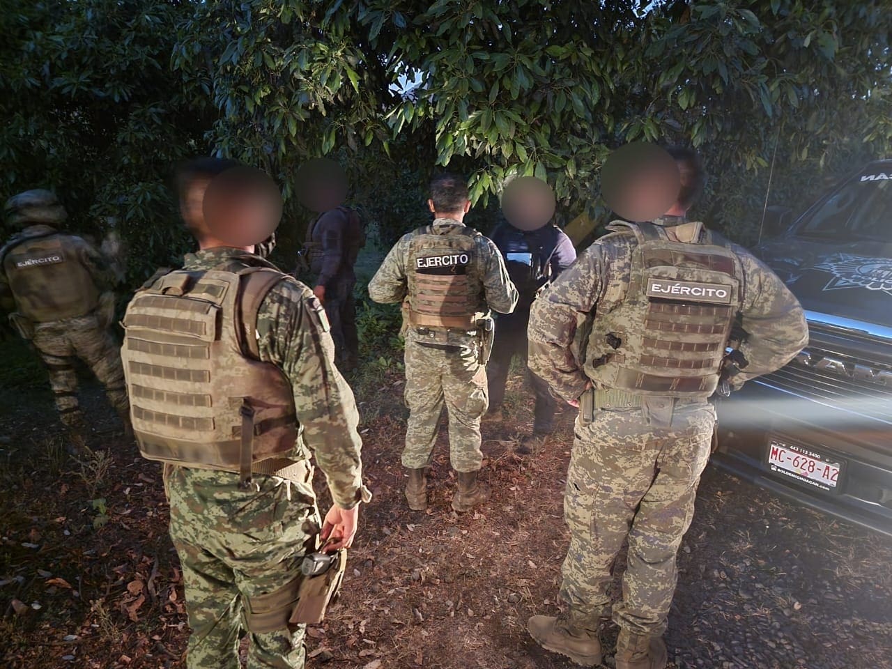 En el evento hubo tres detenidos, entre ellos una mujer, así como tres armas de fuego, aunado al decomiso de 4 uniformes de tela camuflajeada, un par de botas tácticas y una camioneta Ford Ranger con reporte de robo.