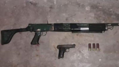Tras inspeccionar a los tripulantes, se localizaron dos armas de fuego calibres .16mm y .32mm, tres cartuchos útiles, así como ocho envoltorios de hierba seca color verde con las características propias a la marihuana.