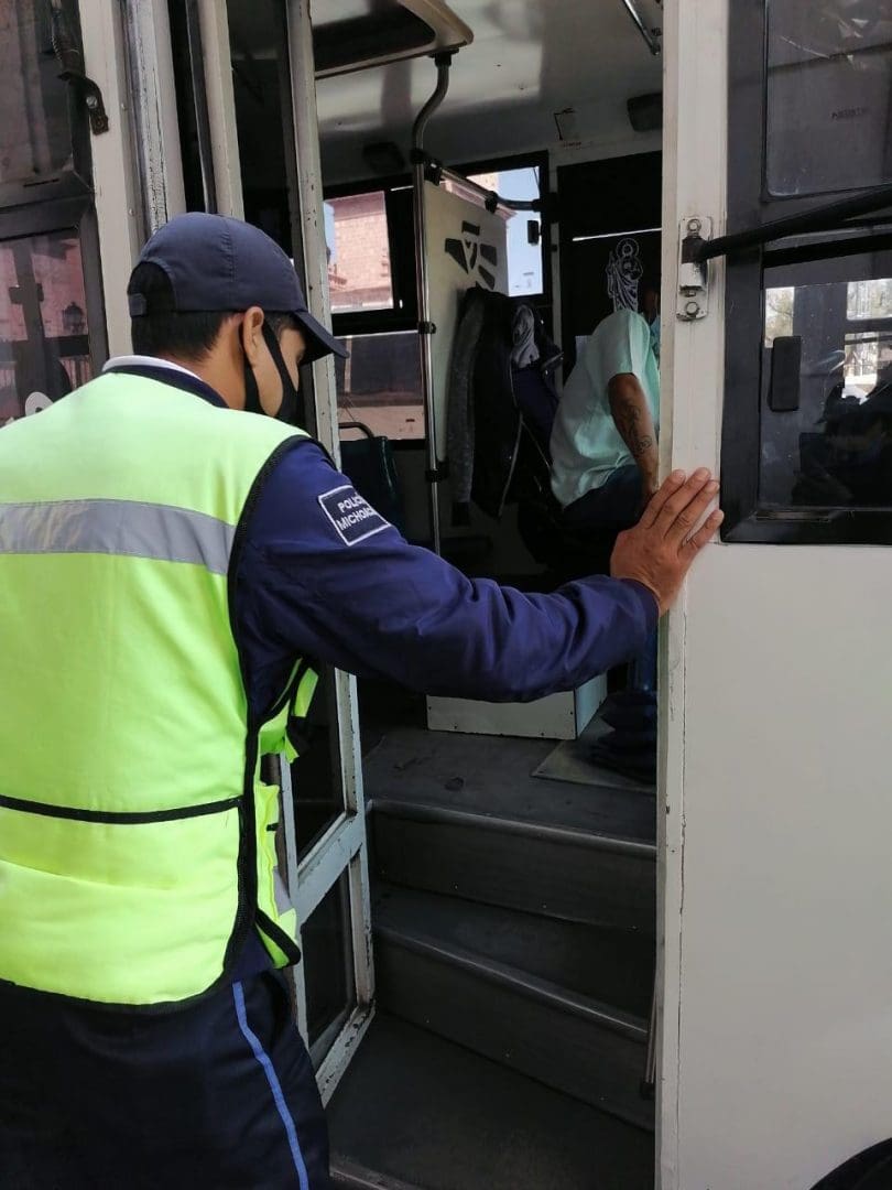 En el Centro Histórico de la ciudad, los oficiales se encuentran efectuando labores de proximidad social con los transportistas, invitándoles a respetar las normas sanitarias para romper la cadena de contagios entre la población moreliana.