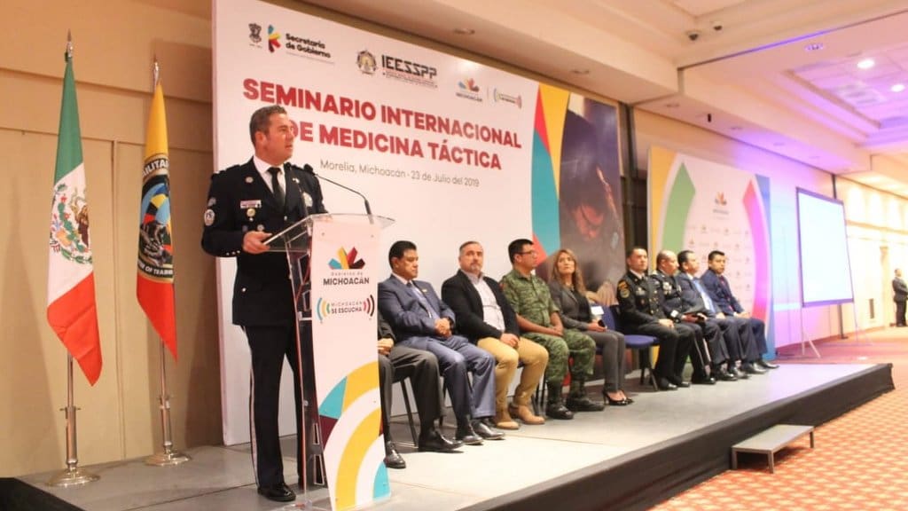 Morelia, Michoacán.- Teniendo la convicción de preparar más y mejores funcionarios encargados de hacer cumplir la ley, con una capacitación y profesionalización policial de nivel internacional, el Instituto Estatal de Estudios Superiores en Seguridad y Profesionalización Policial (IEESSPP), inauguró el “Seminario Internacional de Medicina Táctica”.