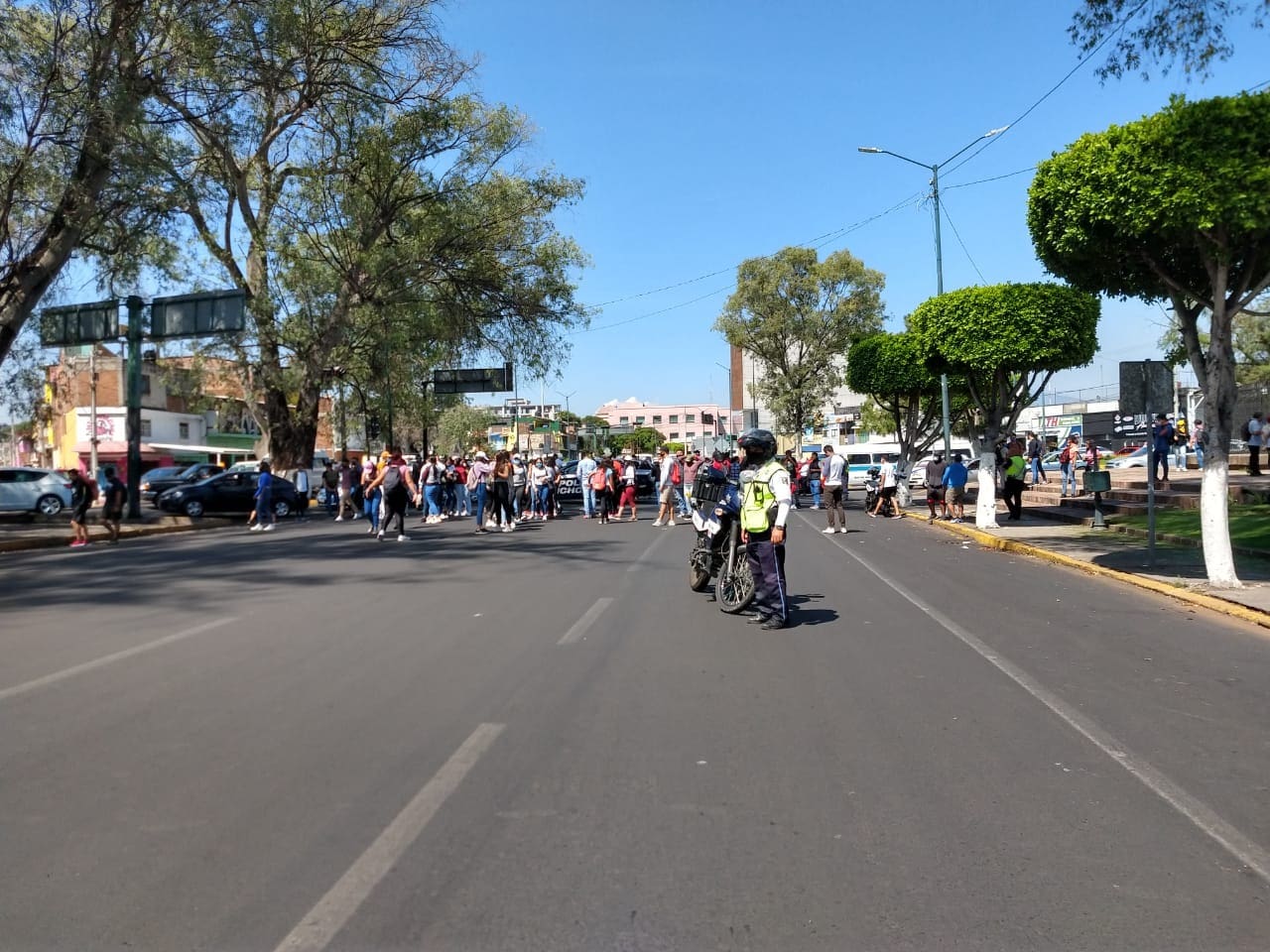 Personal de la Dirección de Tránsito efectúa cortes a la circulación sobre la avenida Francisco I. Madero, a fin de evitar hechos que pongan en riesgo la integridad de la población.