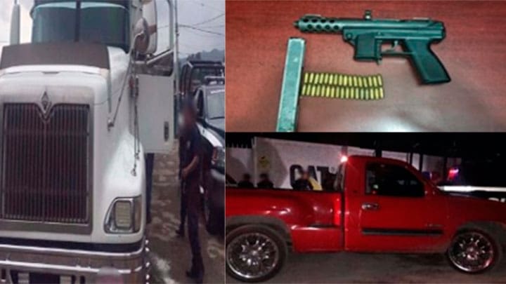 Los vehículos con reporte de robo asegurados fueron dos camionetas marca Ford, dos Nissan y seis más de las marcas Jeep, Mitsubishi, GMC, Toyota, Chevrolet y Dodge; cuatro motocicletas Italika, una Yamaha, una Bajaj y una Lifan; siete automóviles marca Nissan, tres Volkswagen, uno Chevy, un Dodge, y tres más de las marcas Mazda, Mercedes Benz y Honda.