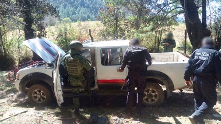 Primero, agentes policiales y castrenses realizaban recorridos de prevención de delitos en la comunidad de Capacuaro, cuando le marcaron el alto a tres personas que iban a bordo de un vehículo para efectuarles una revisión de rutina.