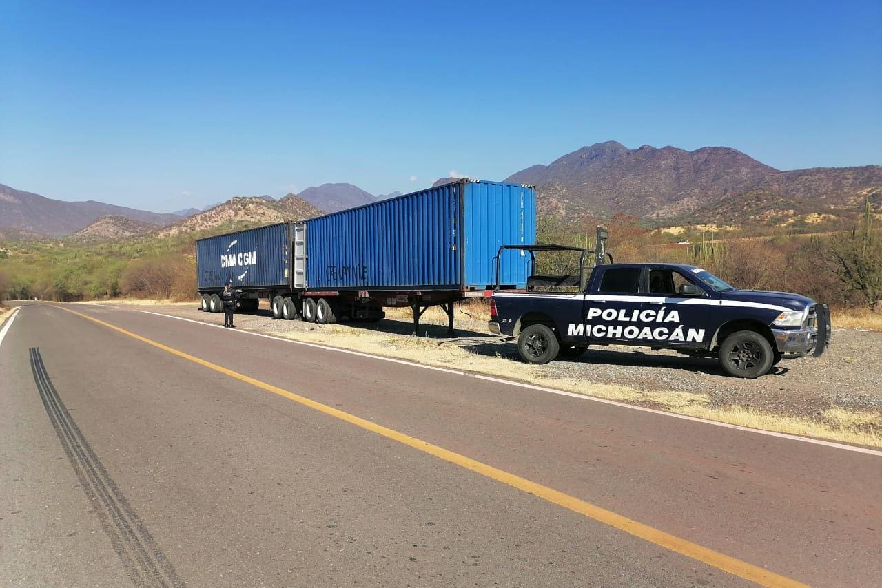Arteaga, Michoacán, a 12 de diciembre de 2020.- En recorridos de vigilancia para la disuasión del delito, elementos de la División Estatal de Caminos de la Secretaría de Seguridad Pública (SSP), recuperaron dos contenedores, dos plataformas y un Dolly con reporte de robo, en este municipio.