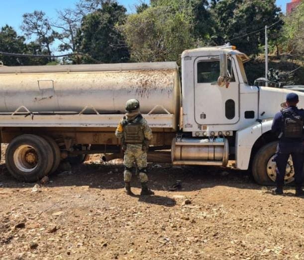Elementos de la Policía Michoacán en coordinación con el Ejército Mexicano realizaban labores preventivas para la disuasión del delito, y sobre la carretera Apatzingán-Acahuato, ubicaron los vehículos de la marca Ford y Peterbilt, respectivamente.