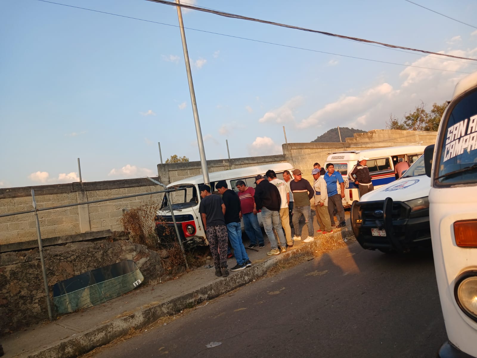 De acuerdo con el reporte oficial, la corporación recibió una alerta telefónica a las 17:15 horas. Al arribar al sitio con la unidad 05, los elementos localizaron un vehículo de transporte público marca Volkswagen, tipo Combi, color blanco con franjas rojas y azules, el cual se había impactado contra una malla ciclónica, una barda y un poste de energía eléctrica.