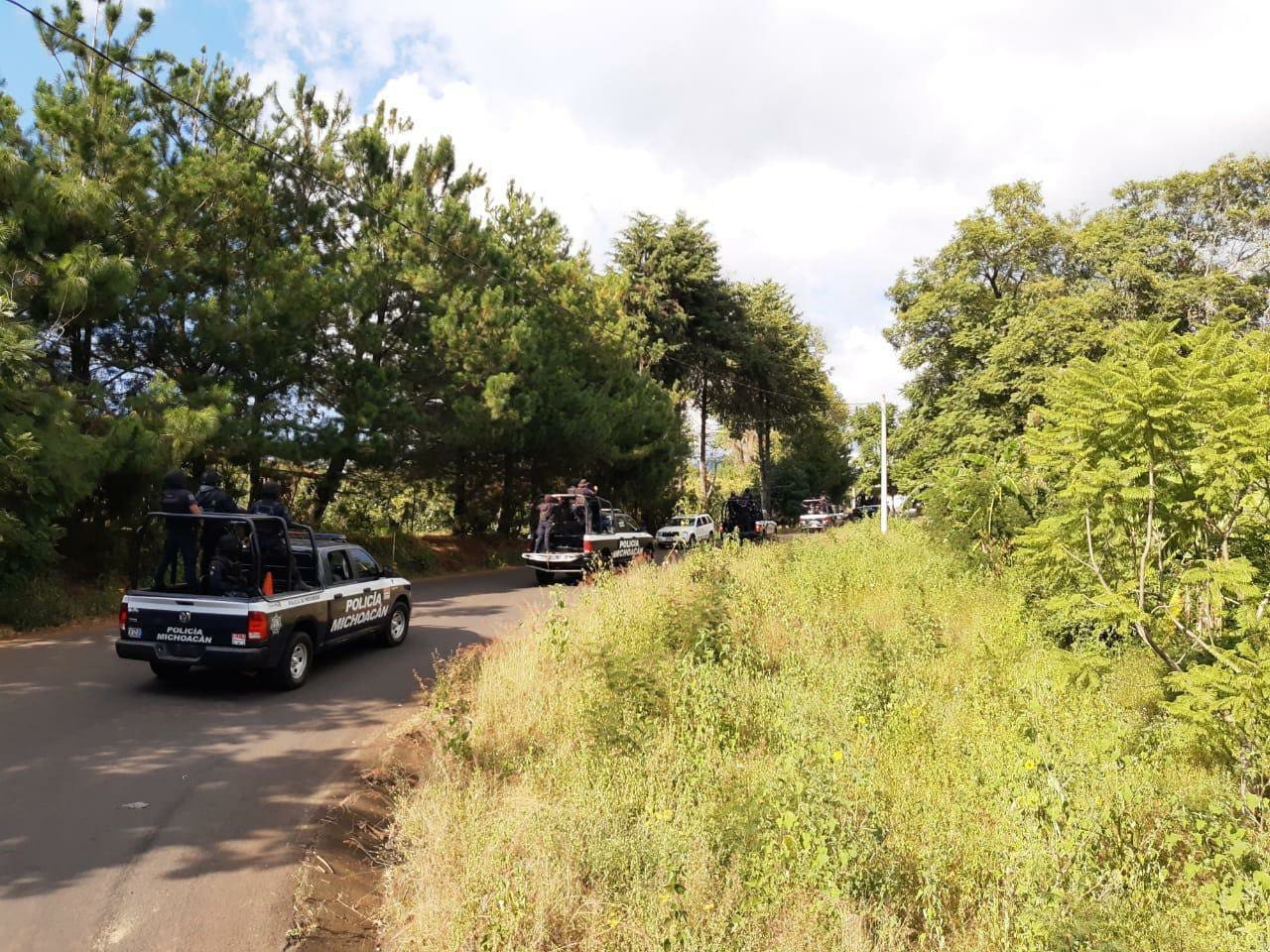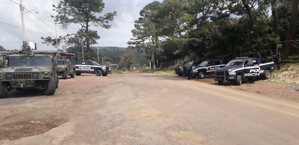 A efecto de inhibir hechos que atenten contra la seguridad de la población, elementos de la Policía Michoacán, Ejército Mexicano y de la GN, desarrollan dispositivos de seguridad en la cabecera municipal y localidades.