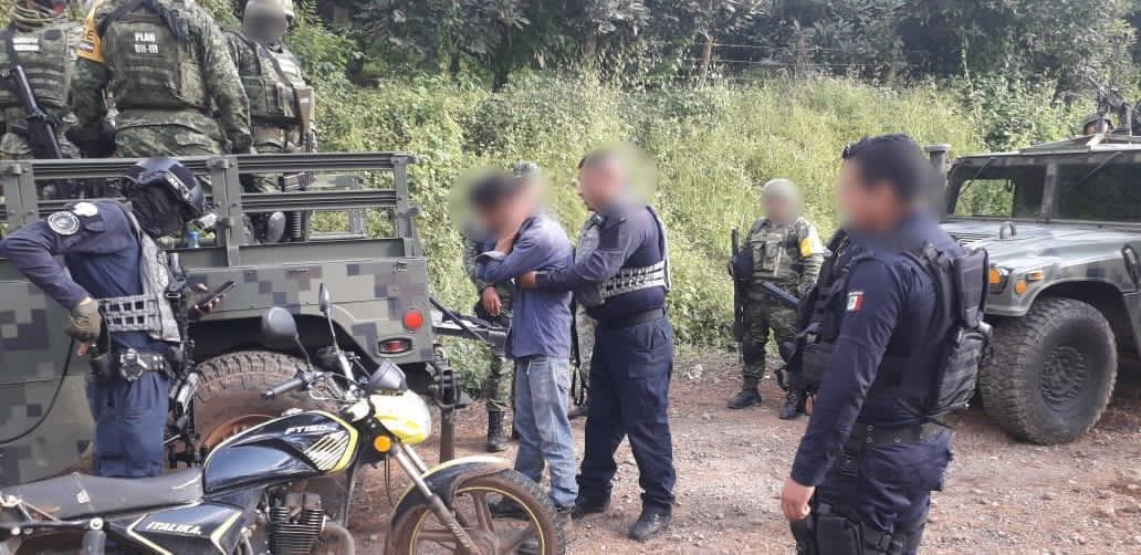 A efecto de inhibir hechos que atenten contra la seguridad de la población, elementos de la Policía Michoacán, Ejército Mexicano y de la GN, desarrollan dispositivos de seguridad en la cabecera municipal y localidades.