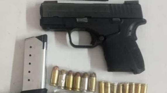 Al darles alcance, se les efectuó una inspección correspondiente, resultado de ello fue localizada entre sus pertenencias un arma de fuego corta, así como cartuchos útiles; lo que derivó en su aseguramiento y puesta a disposición de la autoridad competente.