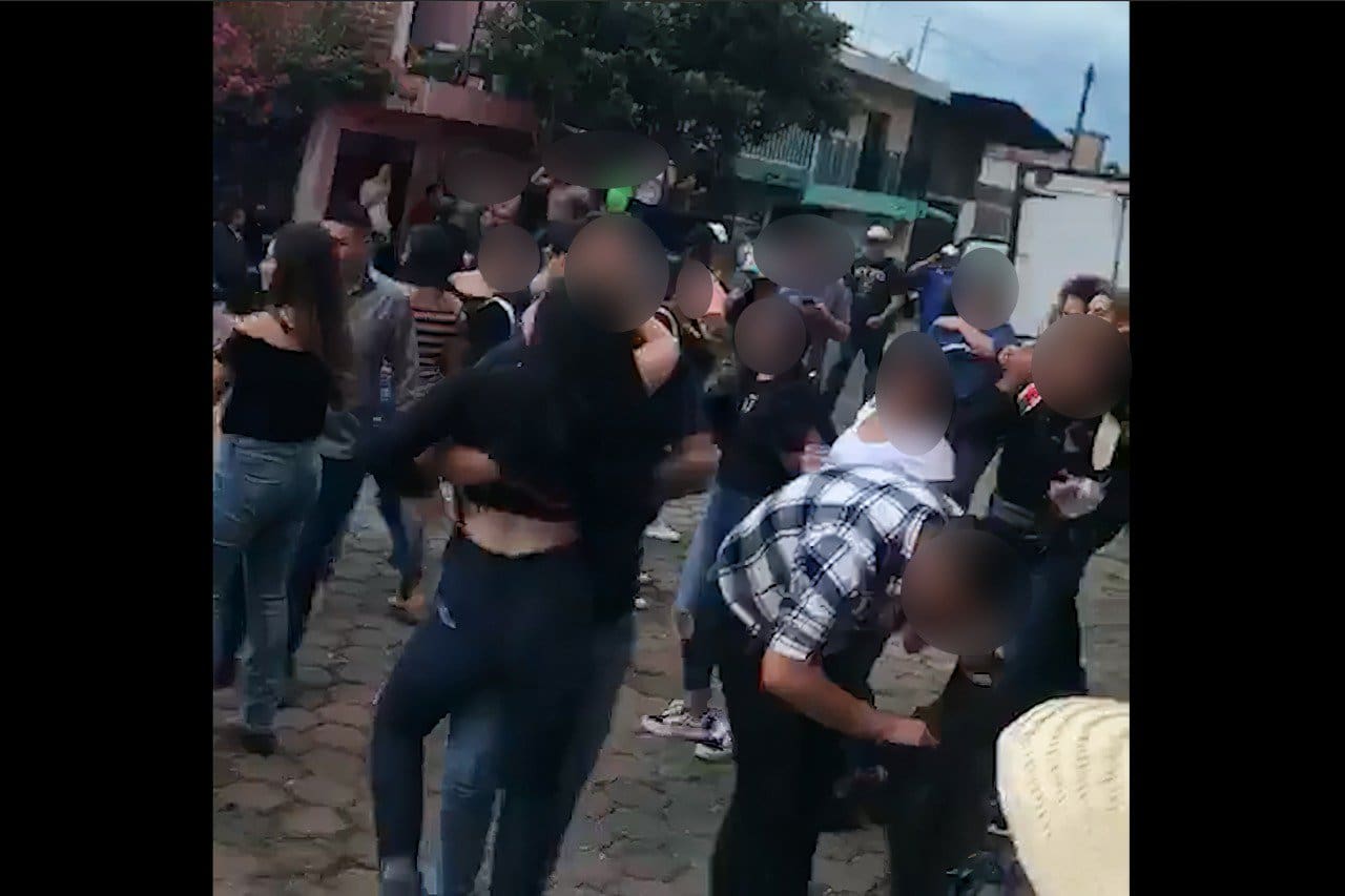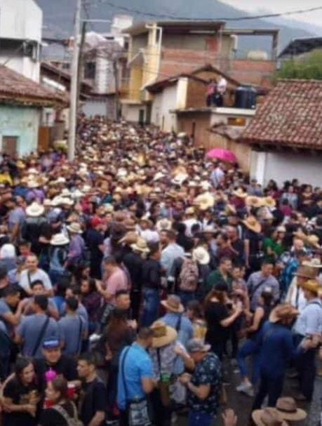 Contrario a toda recomendación sanitaria y con la anuencia del gobierno local, hombres y mujeres se congregaron en la calle Cuauhtémoc y Negrete de la cabecera municipal sin ningún tipo de protección, ni el más mínimo distanciamiento entre los asistentes a la fiesta patronal este lunes a las 15:00 horas.