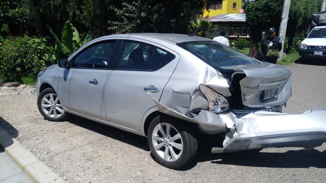 En la circulación un vehículo de la marca GMC tipo Track color negro, conducida por Luis P. de 38 años de edad vecino de Linda Vista, no respeto la distancia debida e impactó un Nissan tipo Versa color plata conducido por Lorenzo G. de 68 años, en su parte trasera ocasionado daños materiales.