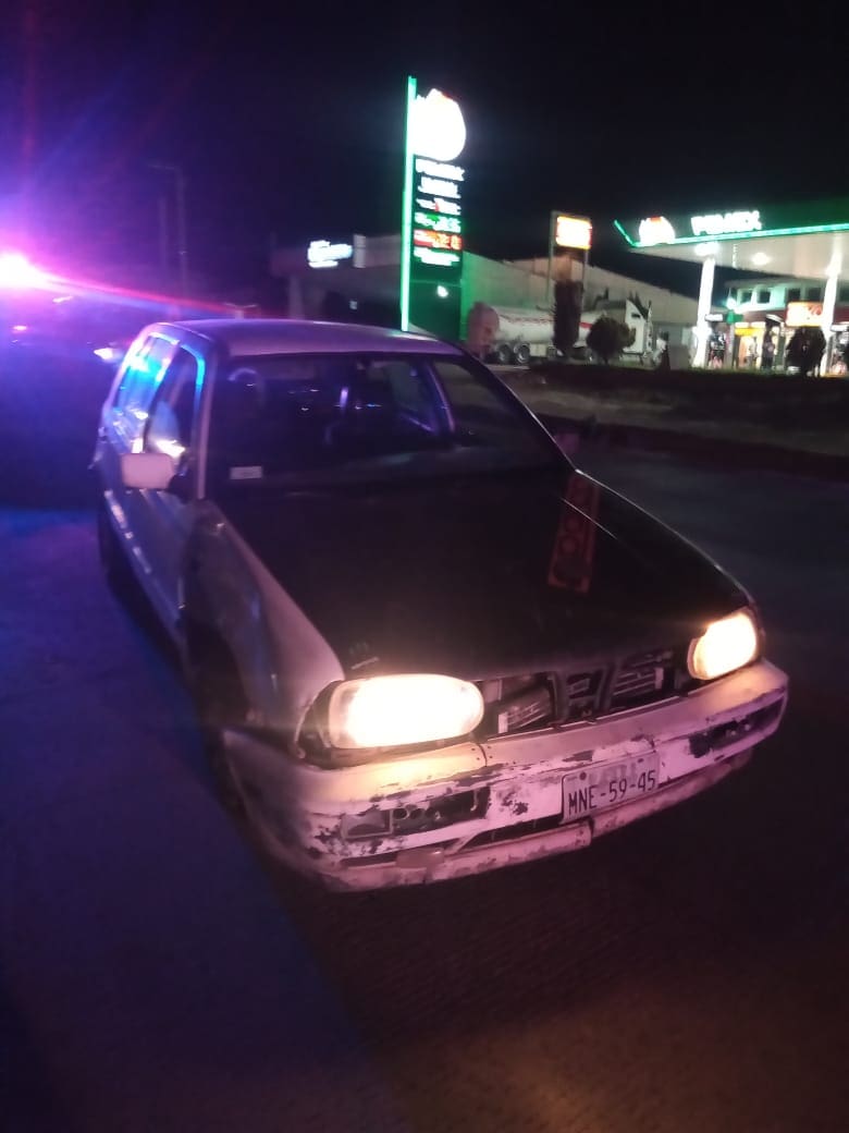 Al arribar al lugar, se contacta con la novedad estando un vehículo y una motocicleta en la orilla de la cinta asfáltica con los siguientes datos, Golf Volkswagen color blanco, del cual el conductor no proporcionó sus datos, el segundo vehículo involucrado es un Pulsar Bajaj 150, negro con rojo, conducido por una persona de 18 años de edad, con domicilio en la calle Vicente Suárez, a la valoración de los elementos no presenta lesiones aparentes.