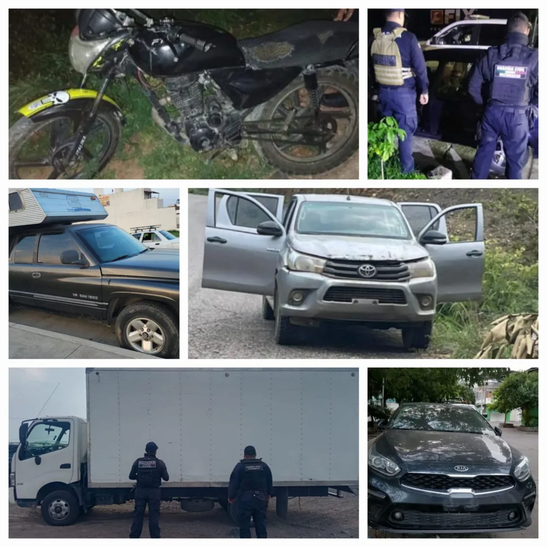 En los municipios de Morelia, Apatzingán, Buenavista y Tumbiscatío; los agentes de la Guardia Civil incautaron seis vehículos con reporte de robo de las marcas Dodge, Volkswagen, Toyota, Hino, Kia e Italika.