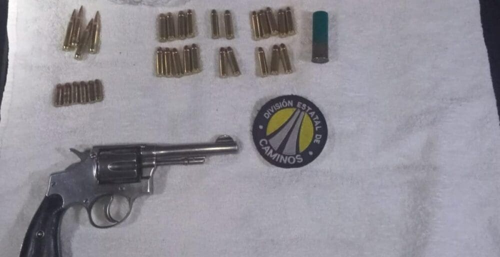Una vez llevadas a cabo las actuaciones respectivas, a los implicados se les aseguró un arma de fuego tipo revólver calibre .38 milímetros, diversos cartuchos útiles; asimismo, al revisar los antecedentes de la unidad se corroboró que cuenta con reporte de robo, por lo cual se procedió a su aseguramiento.