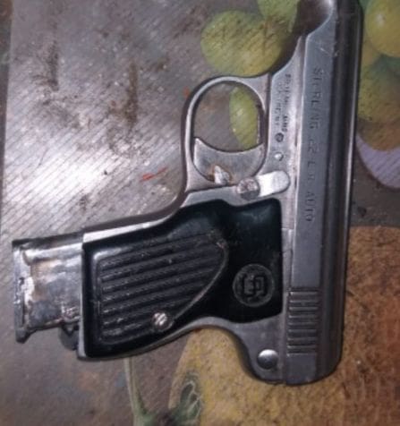 En seguimiento a estos hechos, los agentes policiales hallaron la puerta abierta sin ningún morador y en la zona localizaron abandonada una pistola calibre .22 milímetros, dos castillos percutidos, así como diversos aditamentos al parecer utilizados para el consumo de drogas.