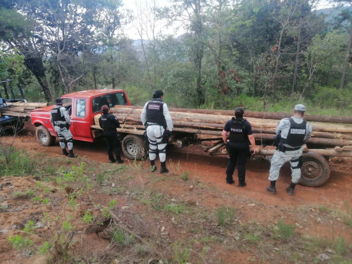 Fue en una localidad aledaña a este municipio, donde los agentes adscritos al Agrupamiento Forestal y Ambiental de la Policía Michoacán en conjunto con personal de la Guardia Nacional (GN), visualizaron una unidad con señales de abandono, al llevar a cabo una inspección, fueron localizados poco más de 20 rollos de madera.