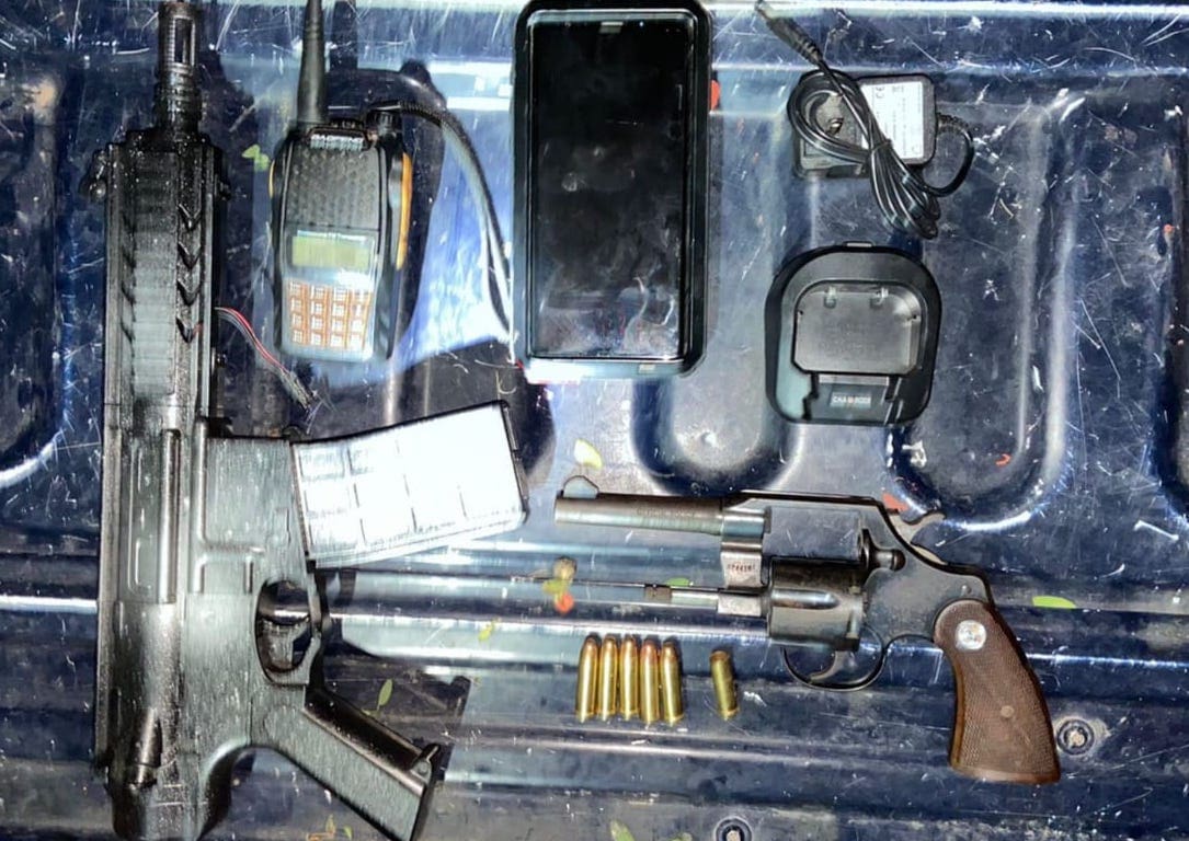 - Al indiciado también le fue encontrada una réplica de pistola, y dos equipos de comunicación.