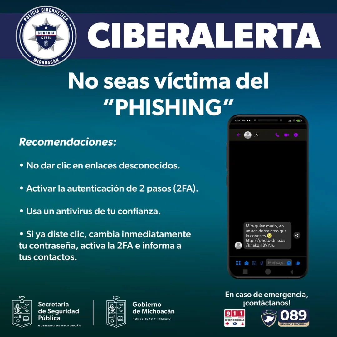 Asimismo, se exhorta a la ciudadanía a denunciar cualquier ilícito cibernético a los teléfonos de emergencias 911 y 089, donde el personal capacitado le atenderá de manera inmediata y sensible.