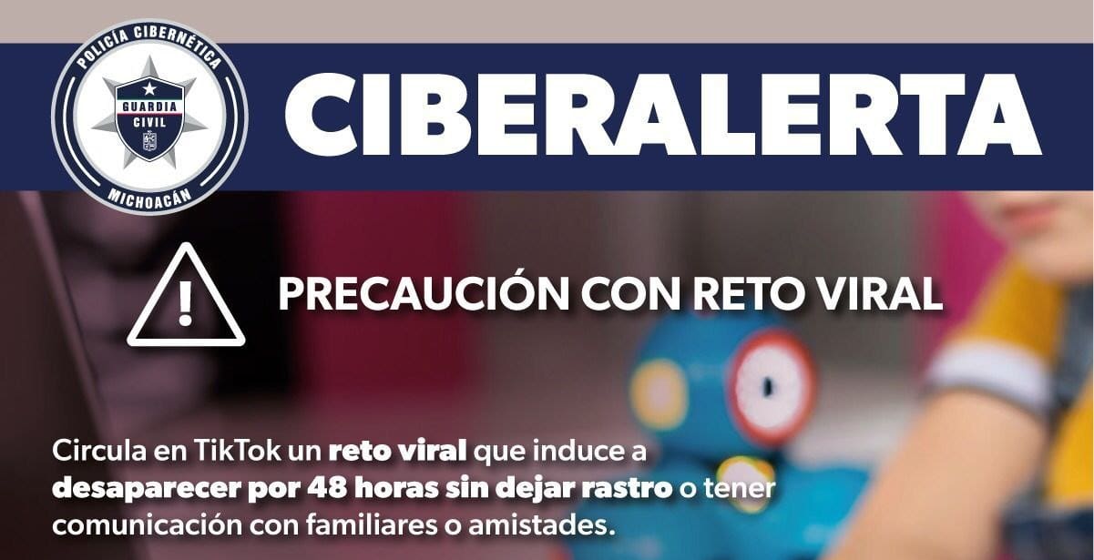 Michoacán, 29 de marzo del 2023.- Debido al reciente crecimiento e interacción por un reto viral en la red social de TikTok, donde sus usuarios deben desaparecer por un mínimo de 48 horas sin compartir información alguna sobre su paradero; la Secretaría de Seguridad Pública (SSP), exhorta a la ciudadanía a hacer caso omiso a estas actividades e informarse en la materia.