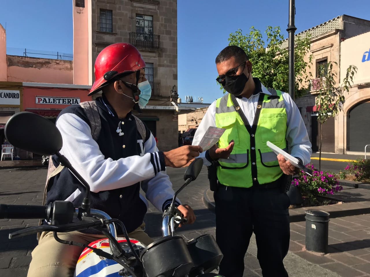 Esta mañana los agentes de la Policía Michoacán acudieron a las inmediaciones de la plaza San Francisco en el Centro de la capital michoacana, sitio donde realizaron la entrega de material informativo para que los operadores de los vehículos cuenten con casco de seguridad, respeten los señalamientos viales, no rebasen y utilicen un carril como todas las unidades.