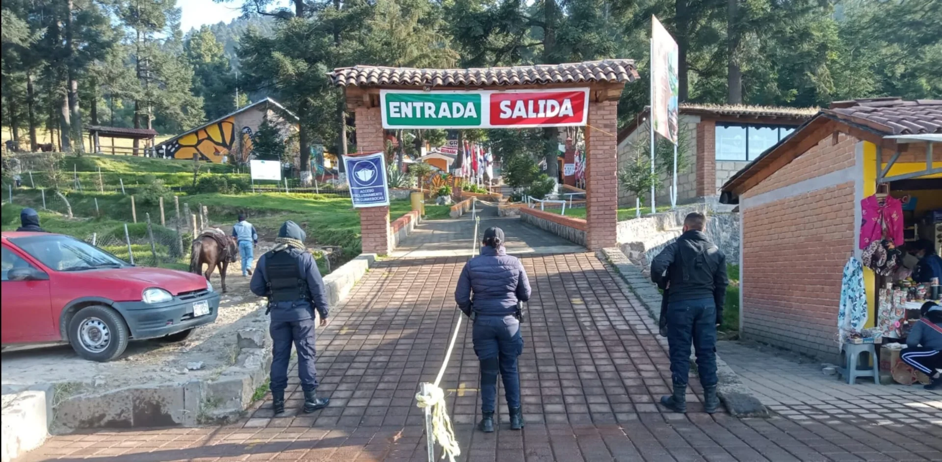 Región Oriente, Michoacán, a 10 de diciembre del 2021.- Con la finalidad de garantizar la seguridad y tranquilidad a los habitantes y visitantes, los oficiales de la Secretaría de Seguridad Pública (SSP) continúan con el despliegue operativo en los santuarios de la Mariposa Monarca.