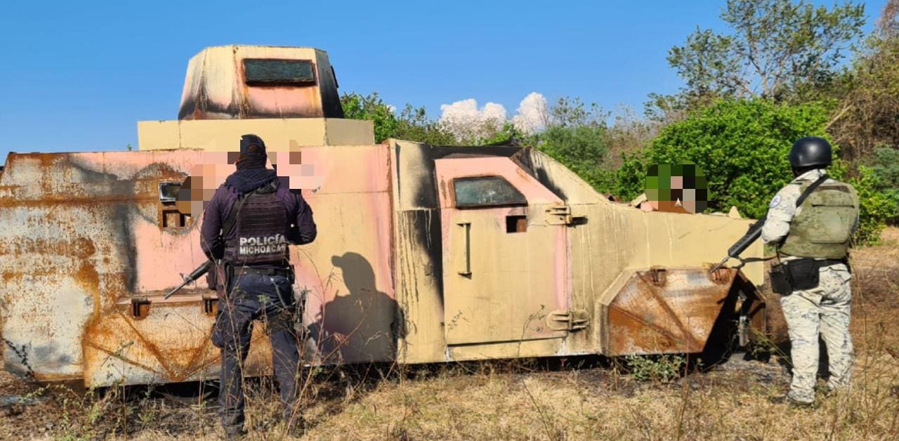 Los oficiales de la Policía Michoacán realizaban recorridos de reconocimiento en conjunto con el Ejército Mexicano y el personal de la GN, a lo largo de diversas localidades para garantizar el bienestar de las y los habitantes, cuando detectaron en las inmediaciones del Rancho El Bule un vehículo con blindaje artesanal.