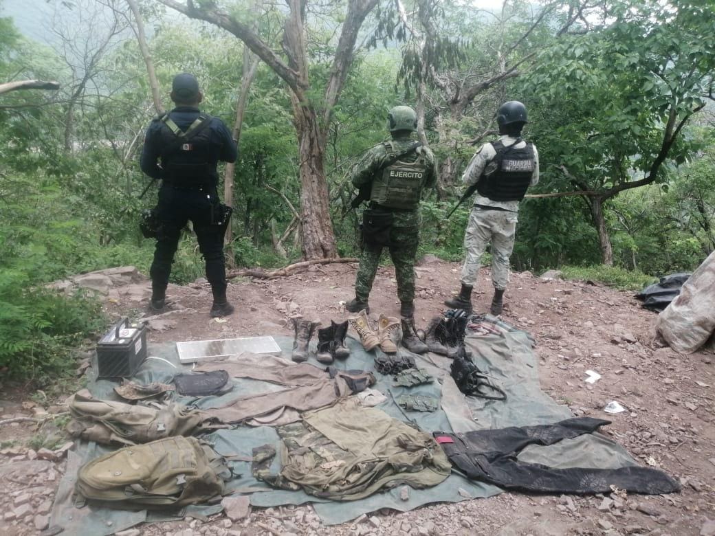 En el lugar aseguraron un artefacto explosivo, así como diversos artículos y herramientas de equipamiento táctico; posteriormente se desmanteló el campamento y se continuaron con las tareas operativas en materia de seguridad en la región.