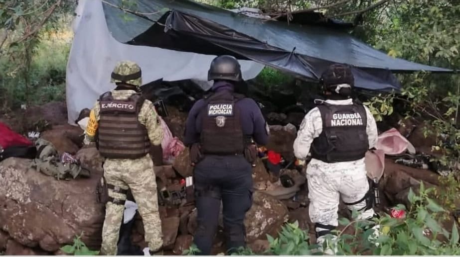 SSP, Sedena y GN desmantelan campamento usado por célula delictiva