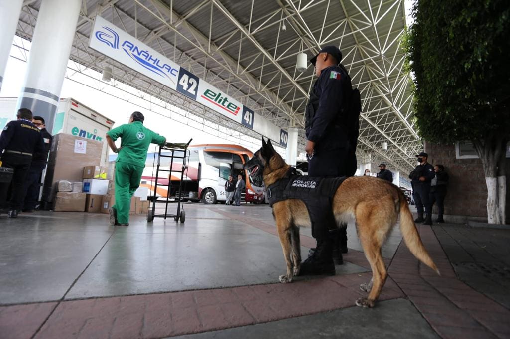 Los elementos policiales que conforman el agrupamiento de la Policía Canina de la Policía Michoacán, así como de la FGE, mantienen dichas labores operativas en coordinación con las instancias federales, y de igual forma inspeccionan las 62 empresas de paqueterías que registra la capital michoacana y sus unidades móviles, a través de filtros itinerantes.