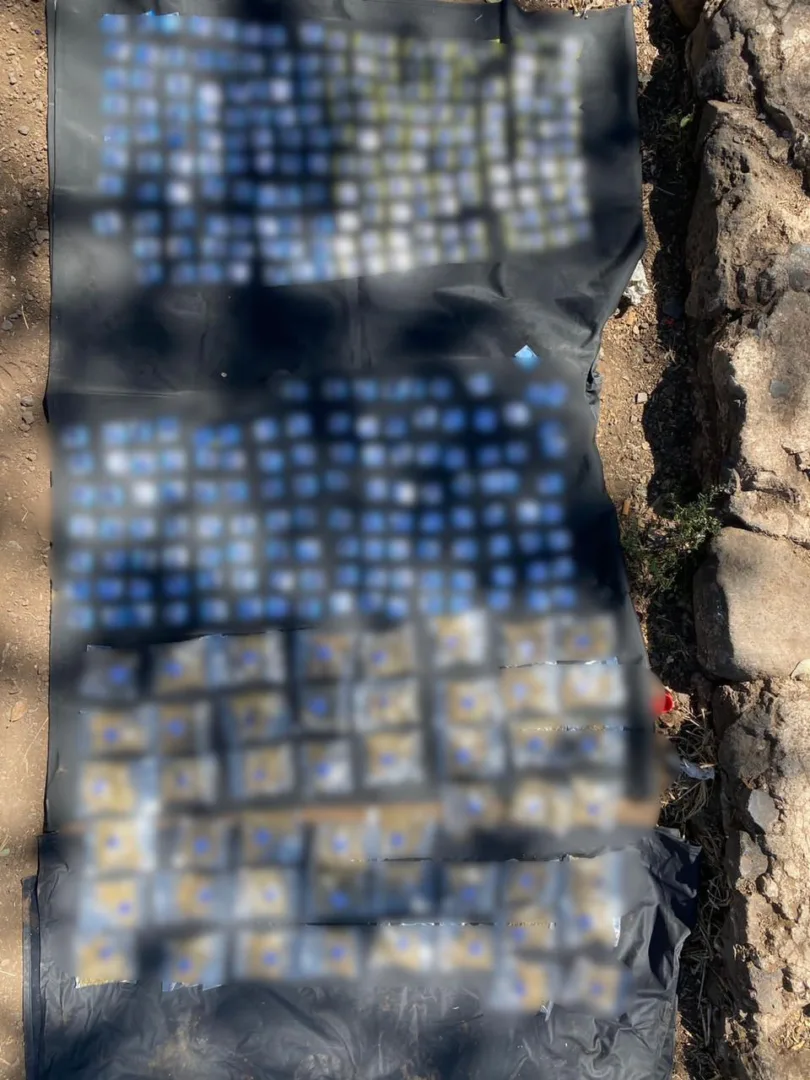 Chavinda, Michoacán, 20 de febrero del 2022.- En una acción conjunta entre los elementos de la Secretaría de Seguridad Pública (SSP), y el personal de la Guardia Nacional (GN), se aseguraron en la colonia El Sagrado Corazón de este municipio un total de 340 envoltorios con diversas drogas.
