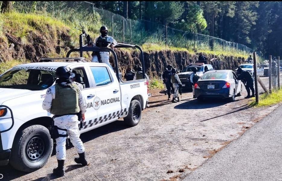 De manera estratégica, los oficiales de la Policía Michoacán en coordinación con el personal de la GN, realizan la implementación de puestos de seguridad en diferentes tramos carreteros, donde a través de inspecciones vehiculares previenen toda conducta que pueda generar un riesgo para la población.